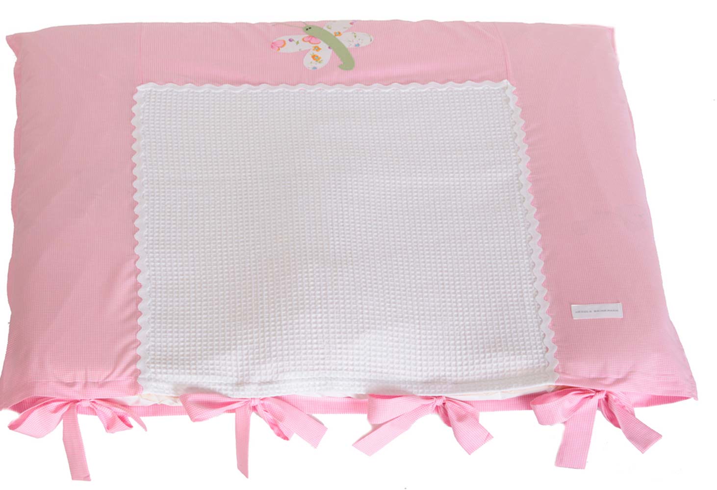 Feinster Baumwollstoff in klassischer Vichy-Karo-Optik und in zartem rosé-Ton umrahmt die kuschelweiche Liegefläche aus Waffelpiqué;